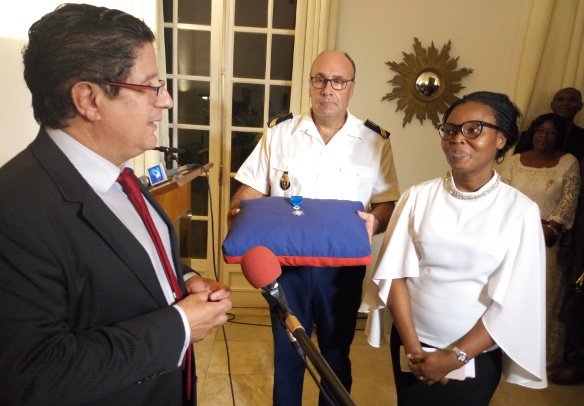 « Vous montrez toujours les mêmes qualités commerciales que votre maman vous avait inculquées. Vous aimez voyager pour découvrir d’autres civilisations. Toutes ces qualités professionnelles ont fait de vous, une personnalité qui porte haut les couleurs de la France au Togo. C’est pour cela que la France a souhaité vous distinguer. C’est pour cela que je suis fier ce soir, et en vertu des pouvoirs qui me sont conférés, de vous faire chevalier de l’Ordre National du Mérite », a prononcé le diplomate français, avant de remettre la distinction à Mme Zanou.