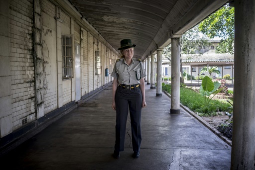 En photo : La première femme albinos responsable pénitentiaire pose au siège de l’administration pénitentiaire à Harare le 22 février 2018, AFP ZINYANGE AUNTONY