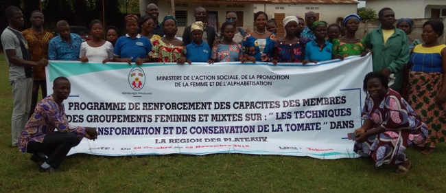 Cette formation s’inscrit dans le cadre du projet de renforcement de capacités des membres des groupements féminins et mixtes sur les techniques de transformations et de conservation des fruits et légumes dans la région des Plateaux.