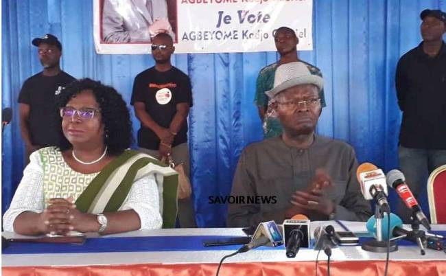 Agbéyomé Kodjo avait à ses côtés, certains de ses soutiens dont son porte-parole pour cette campagne électorale Mme Brigitte Adjamagbo-Johnson (secrétaire générale de la Convention Démocratique des Peuples Africains/CDPA).