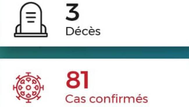 Quatre nouveaux cas confirmés au coronavirus ont été signalés ce mercredi au Togo à 11H30, portant officiellement à 81 le nombre total de cas dans le pays dont 3 décès et 35 patients guéris.