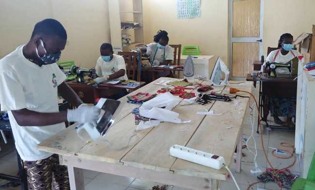 Le siège du Nouvel Engagement Togolais (NET) à Lomé est érigé en un atelier de fabrication de masques « made in Togo » dont une partie sera distribuée gratuitement aux couches vulnérables, a constaté l’Agence Savoir News.