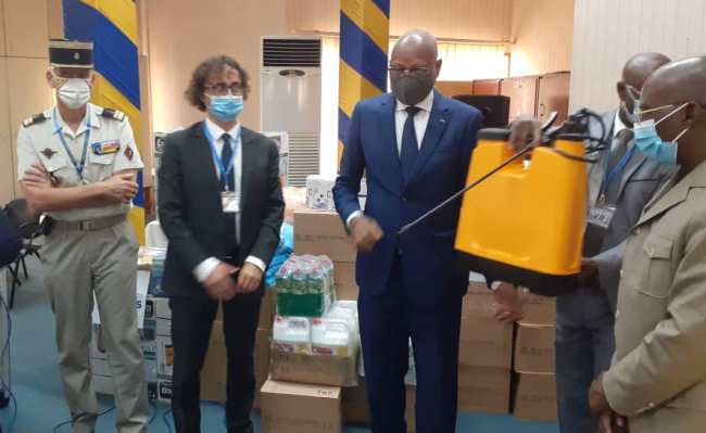 Le matériel a été remis par Antonio Capone (Chef de coopération ad par intérim/Délégation de l’UE). Cette cérémonie qui s’est déroulée en présence du Lieutenant-colonel Régis Lacroix (Attaché de défense près l’ambassade de France au Togo, est une nouvelle illustration de l’engagement de la « Team Europe » (Ambassades d’Allemagne et de France, Délégation de l’Union européenne et Chambre de commerce européenne au Togo) à œuvrer de manière concertée pour appuyer la riposte menée par les autorités togolaises contre la pandémie de la Covid-19.