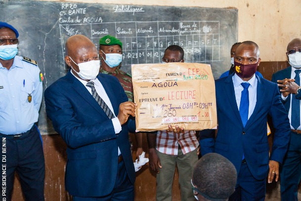 Avant le geste symbolique de lancement officiel des épreuves, et en ce temps où le Bénin — à l’instar des pays du monde entier — lutte contre la propagation de la Covid-19, le ministre Karimou a sillonné les salles d’examen pour s’assurer de ce que les gestes barrières sont respectés.
