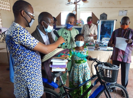 Composées de sacs d’écolier, cahiers, stylos, ensemble géométrie, des tissus kaki, des jeux et d’un vélo, ces récompenses sont des encouragements pour permettre à ces meilleurs élèves du CEPD de poursuivre les études secondaires mais aussi une stimulation aux autres élèves à donner le meilleur d’eux-mêmes l’année prochaine.