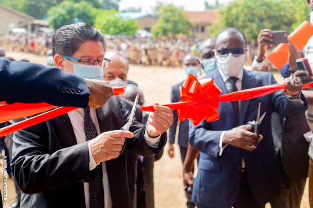 C’est la grande cour du CEG 1 de Sékou (environ 45 km de Cotonou) qui a abrité la cérémonie. Ce Collège a bénéficié de 2 modules de 4 classes, 2 latrines à 4 cabines, 2 latrines à 2 cabines pour personnes handicapées, 200 tables bancs et 8 bureaux enseignants, pour un montant total de 72,314 millions de F.CFA.