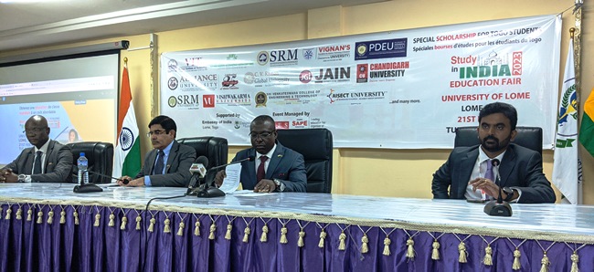 Des représentants d’universités indiennes ont entretenu des étudiants togolais en leur fournissant des informations et des conseils sur les possibilités d’éducation en Inde, les avantages d’étudier en Inde en particulier les possibilités de bourses d’études disponibles pour les étudiants du Togo.