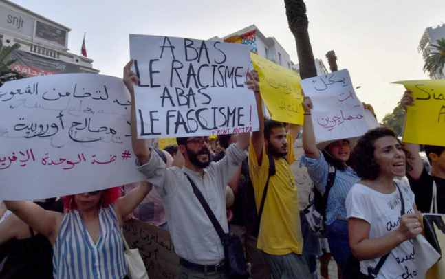 « État répressif policier qui vous expulse et nous réprime », « La Tunisie est africaine, non au racisme », « à bas le fascisme », ont-ils scandé.