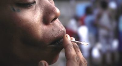 A quelques mètres, ses compagnons de misère s’entassent dans un taudis étriqué au cœur d’un bidonville où des enfants jouent dans les ordures, au milieu des cochons. Les volutes de kush asphyxient la pièce.