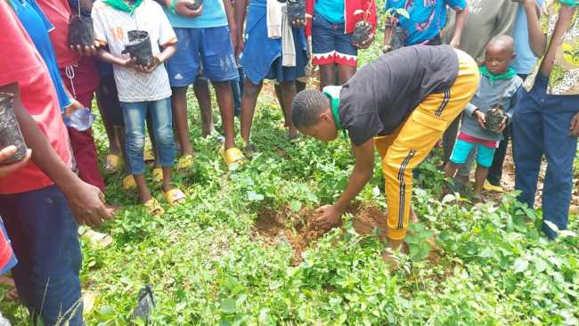 Il a invité les élèves à prendre conscience du but du reboisement et à prendre soin des plants mis en terre.