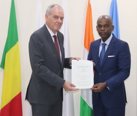 Claudius Fischbach, nouvel ambassadeur d’Allemagne au Togo a présenté mardi, la copie figurée de ses lettres de créance au ministre togolais des affaires étrangères, Robert Dussey.