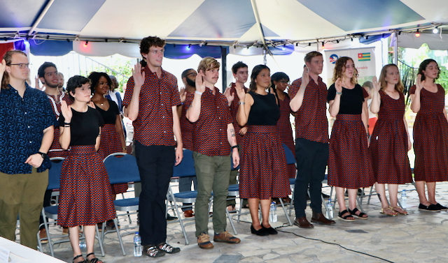 21 nouveaux volontaires du Corps de la Paix ont prêté serment ce vendredi à Lomé, lors d’une cérémonie en présence de la ministre du développement à la base, de la jeunesse et de l’emploi des jeunes, Myriam Dossou-D’Almeida et de l’Ambassadeur des Etats-Unis Elizabeth Anne Noseworthy Fitzsimmons.