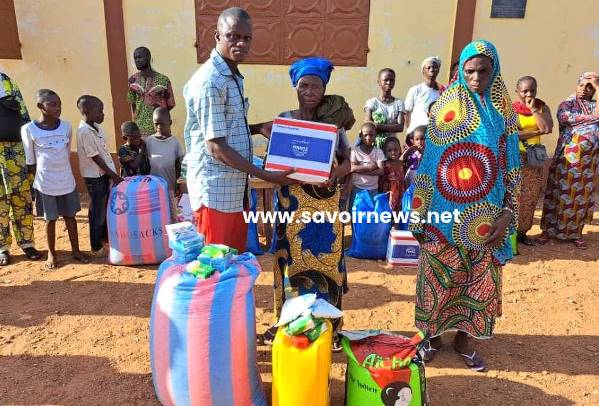 Ont bénéficié de ce don, 6 ménages avec 11 parents et 18 enfants vulnérables dont la plupart sont des femmes réfugiés et déplacées victimes des attaques terroristes. Le don partagé est composé d’un bidon d’huile de 25 litres, d’un sac de maïs de 60 bols, de 6 sacs de riz de 25kg, de 2 cartons de spaghetti, de prêt de 120 paires de savon de lessive, 72 paires de savon de douche et 2 sacs d’Omo (33 sachets/sac). Chaque ménage bénéficiaire est reparti avec un kit constitué du riz, du maïs de l’huile, du spaghetti et du savon.