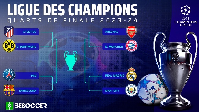 Les quatre affiches des quarts de finale de la Champions League ont de quoi faire saliver : le PSG affrontera le FC Barcelone. Un énorme choc opposera également Manchester City, tenant du titre, au Real Madrid, selon le tirage au sort effectué vendredi à Nyon au siège de l’UEFA. Arsenal – Bayern Munich et Atletico Madrid – Borussia Dortmund seront les deux autres duels de ces quarts.