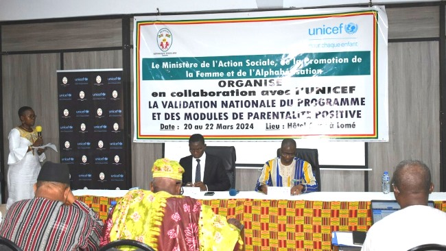 Le Togo a lancé la validation du Programme National de Promotion de la Parentalité Positive et de ses modules, lors d’un atelier tenu mercredi à Lomé. La rencontre est organisée par le ministère de l’action sociale, de la promotion de la femme et de l’alphabétisation en collaboration avec le Fonds des Nations Unies pour l’enfance (UNICEF).