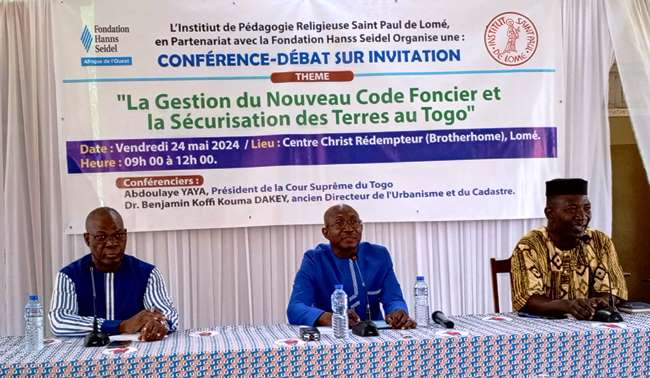 Le 12ème acte de la conférence-débat organisée par l’Institut de pédagogie religieuse Saint Paul de Lomé en partenariat avec la Fondation Hanns Seidel s’est tenue ce mardi dans les locaux du Centre Christ Rédempteur (Brotherhome) à Lomé autour du foncier, a constaté une journaliste de l’Agence Savoir News.