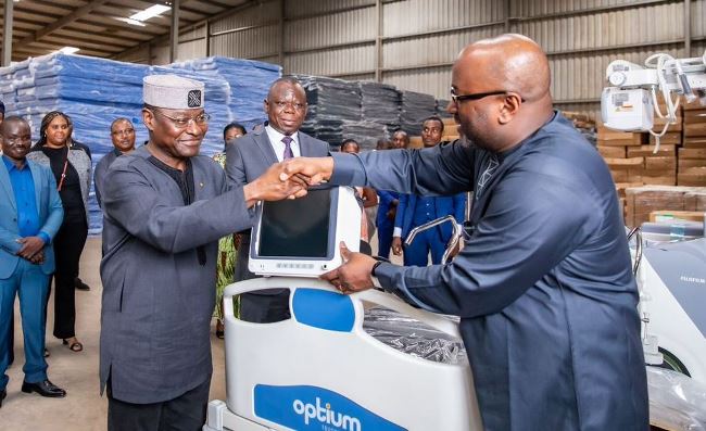 Un important lot d’équipements médicaux modernes destiné à plusieurs formations sanitaires de toutes les régions du Togo, a été réceptionnés jeudi par le ministre de la santé et de l’hygiène publique, Pr Moustafa Mijiyawa, en présence de son homologue chargé de l’accès universel aux soins, Jean Marie Tessi.