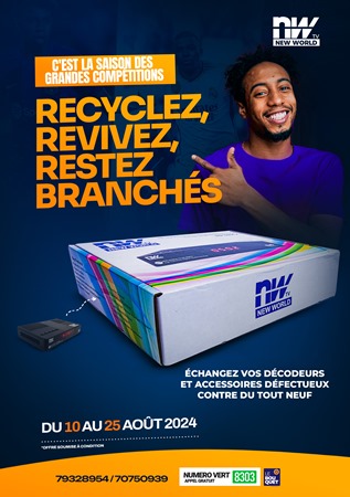 New World TV, la chaîne panafricaine incontournable pour les amateurs de sport, a lancé depuis le 10 août, une campagne spéciale visant à améliorer l’expérience de ses abonnés. Ainsi, la chaîne offre une opportunité unique à ses clients : échanger leurs décodeurs et accessoires défectueux contre des modèles neufs.