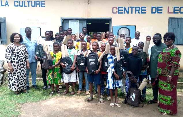 Les kits scolaires sont composés de sacs, stylos, cahiers, règles, ensembles géométriques, couvertures de cahiers et tenues scolaires.