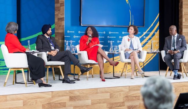 Étaient également présents : Ajay Banga (président du Groupe de la Banque mondiale), le ministre chargé du développement et de l’équité genre du Royaume-Unis et le ministre des finances du Nigeria.