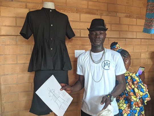 « C’est une tenue sur laquelle j’ai beaucoup travaillé », confie fièrement le jeune âgé de 22 ans, venu de Niamtougou pour suivre sa formation dans ce centre.