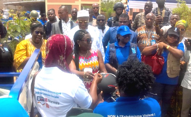 Ce don de matériel s’inscrit dans le cadre du Projet sous-régional de PNUD sur le renforcement de la résilience communautaire pour prévenir et combattre l’extrémisme violent dans le corridor atlantique (Bénin, Côte d’Ivoire, Ghana et Togo) et le projet « Bâtir le Leadership Socioéconomique des Femmes et des Jeunes des Savanes (BLS-FJ) », financé par l’OIM.
