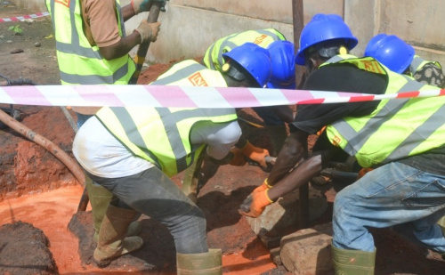Sur le terrain, les travaux géotechniques du deuxième puits souterrain ont commencé. Il s’agit d’analyser la nature et la solidité du sol pour y installer un micro-tunnelier. Cet engin percera un tunnel de 7,5 km destiné à évacuer les eaux de pluie vers le fleuve Zio.