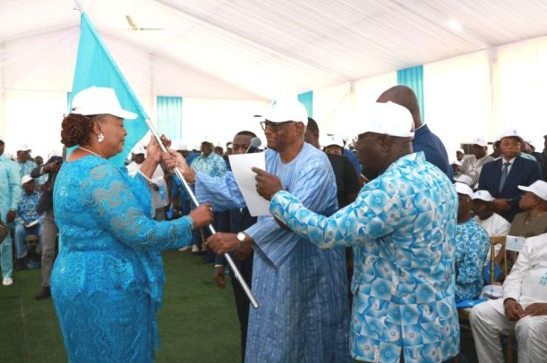 Le moment fort de la rencontre s’est matérialisé par la remise du drapeau du parti à la représentante des candidats.