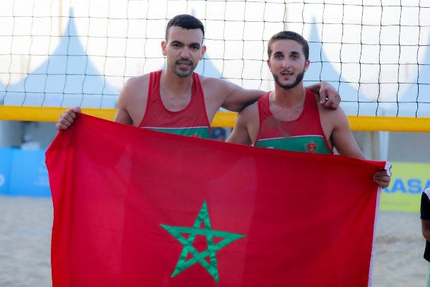 La seconde demi-finale fut l’un des sommets de la journée. Opposés aux Mozambicains José Mondlane et Osvaldo Mungoi, les Marocains Zouneir Elgraoui et Ilyass Lazar concèdent le premier set 14-21, avant de revenir dans le match avec énergie (21-16), puis de conclure brillamment au tie-break (15-10). Une victoire 2 sets à 1 qui scelle une finale aux allures de derby national.