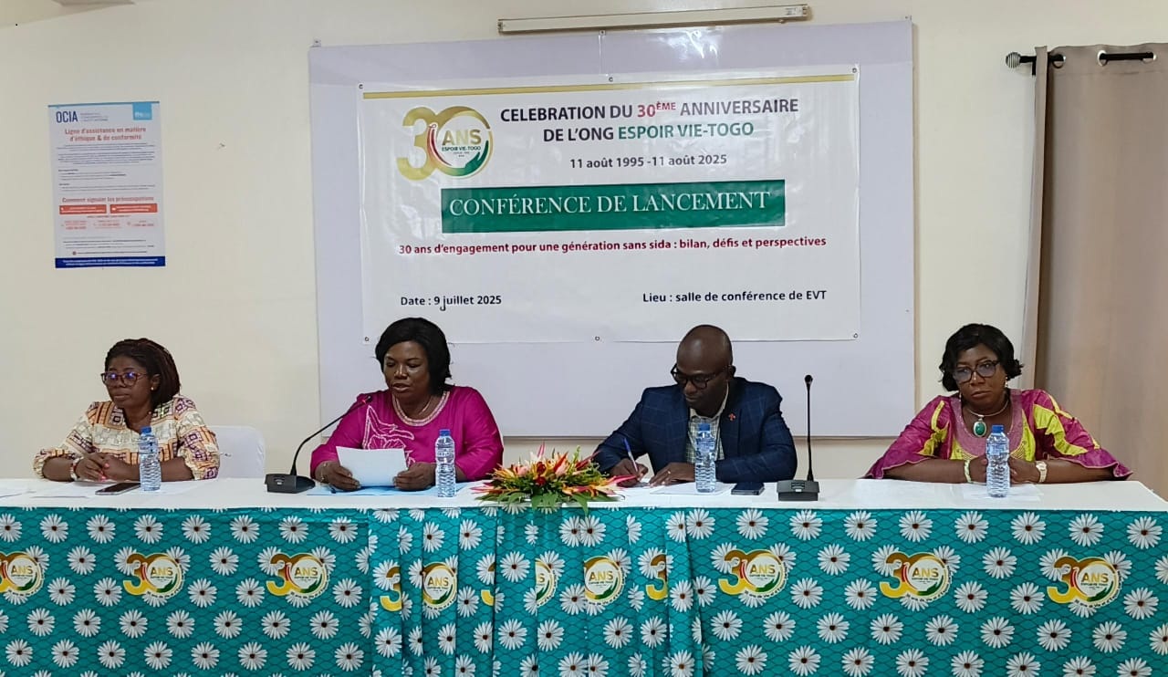 L’ONG Espoir Vie Togo (EVT) célèbre cette année, 30 ans d’engagement pour une génération sans sida. Les activités inscrites au programme de cette célébration ont été officiellement lancées ce mercredi 09 juillet 2025 par Mme Yawa Bienvenue Dramani (Présidente du Conseil d’administration de EVT).