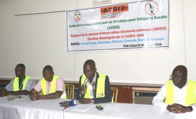 Les élections municipales du 17 juillet au Togo se sont déroulées dans le « calme et dans le respect des textes », ont salué dimanche 20 juillet 2025 à Kara (environ 420 km au nord de Lomé) les responsables de l’Action de Communication pour un Développement Intégral et Durable (ACDID), une organisation de la société civile.