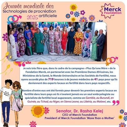 « À la Fondation Merck, nous célébrons laJournée Mondiale des Technologies de Procréation Médicalement Assistéeen renforçant les capacités en matière de Fertilité et de Soins de Reproduction et en autonomisant les femmes infertiles en améliorant leur accès à l’information, en changeant les mentalités et en leur fournissant des soins de fertilité de qualité et équitables en Afrique et en Asie, dans le cadre de notre campagne intitulée Plus Qu’une Mère », a déclaré Dr Rasha Kelej (CEO de la Fondation Merck).