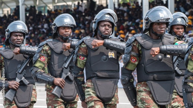 « A travers ce défilé militaire, les Forces de défense et de sécurité marquent leur attachement à la démocratie, au renforcement des relations entre l’armée et la Nation, ainsi que leur adhésion à la vision du gouvernement en place », a précisé le colonel James Johnson (porte-parole de l’armée béninoise) à l’ouverture du défilé.