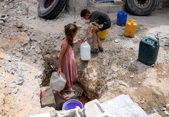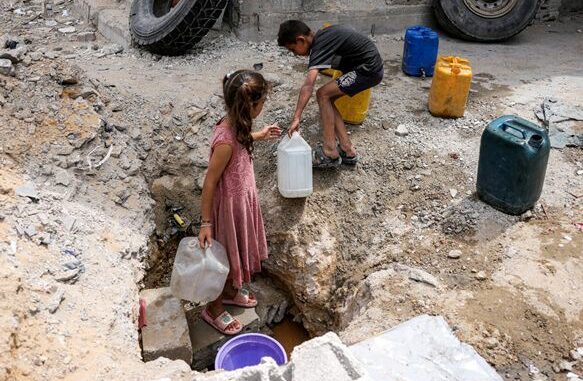 Sous un soleil écrasant, des Gazaouis épuisés et affamés parcourent chaque jour des kilomètres à pied à la recherche de quelques litres d’eau, souvent saumâtre ou polluée, à l’heure où la crise de l’eau, préexistente à la guerre, s’est terriblement aggravée selon des sources humanitaires et des responsables locaux.