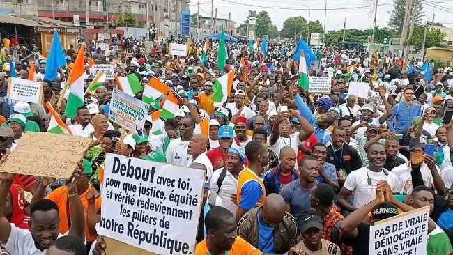 La manifestation était organisée par le Front commun composé des deux principales formations d’opposition, le Parti démocratique de Côte d’Ivoire (PDCI) et le Parti des peuples africains – Côte d’Ivoire (PPA-CI).