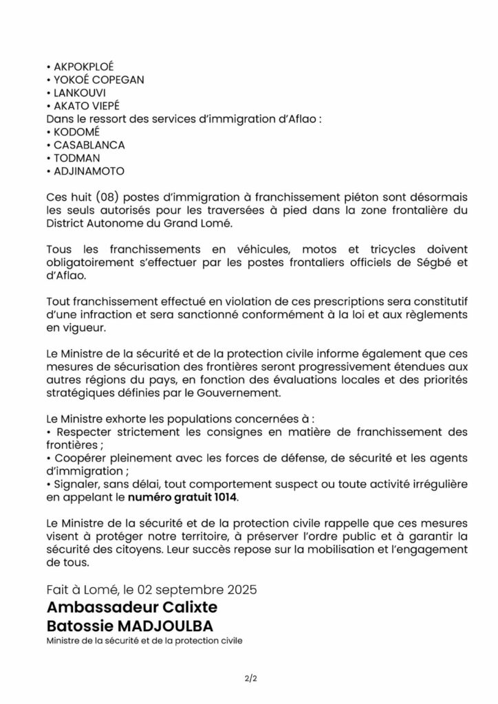 VOICI LE COMMUNIQUE DU MINISTRE DE LA SECURITE