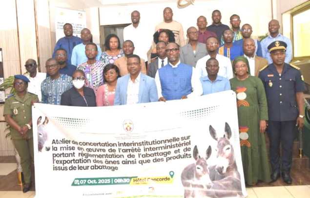 Une trentaine d’acteurs institutionnels ont pris part le mardi 7 octobre 2025 à Lomé, à un atelier de concertation consacré à la mise en œuvre de l’arrêté interministériel encadrant l’abattage et l’exportation des ânes ainsi que des produits dérivés.
