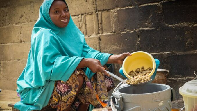 © PAM/Oluwashina Oni Une femme de l’État de Yobe, au Nigeria, soutenue par le PAM, prépare de la nourriture pour sa famille.
