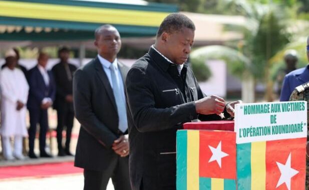 Le président du Conseil et chef suprême des armées Faure Essozimna Gnassingbé a présidé le samedi 24 janvier 2026 au camp militaire Général Améyi à Kara (environ 420 km au nord de Lomé), la cérémonie officielle d’hommage aux soldats tombés au champ d’honneur dans le cadre de l’opération Koundjoaré au cours de l’année 2025.