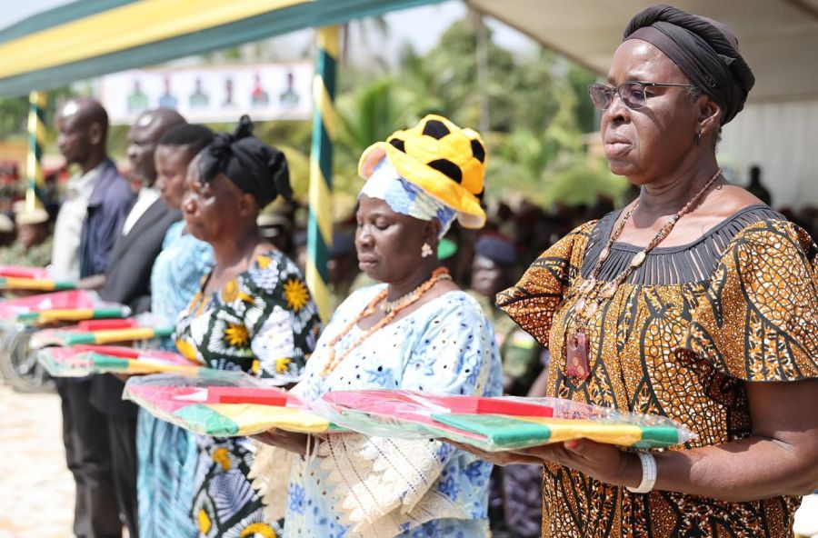 Ce geste de haute portée mémorielle a précédé la remise solennelle d’attributs symboliques notamment des médailles et drapeaux nationaux aux familles endeuillées en reconnaissance du sacrifice ultime consenti par leurs proches pour la Nation.