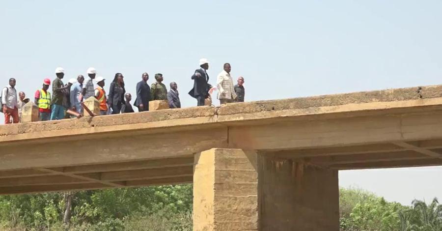 Faure Gnassingbé s’est rendu sur le chantier de construction du pont métallique sur la rivière Kéran pour s’enquérir de l’évolution des travaux lancés en mars 2024 dans le cadre du programme national de construction de 21 ponts modulaires d’affranchissement à travers le Togo.