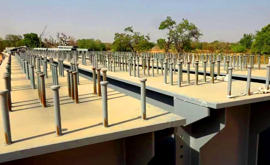 Rappelons qu’il est prévu la construction de 21 ponts mixtes acier-béton de type Unibridge dans toutes les régions du pays. Les travaux progressent avec un taux de réalisation supérieur à 80 % sur certains sites. FIN